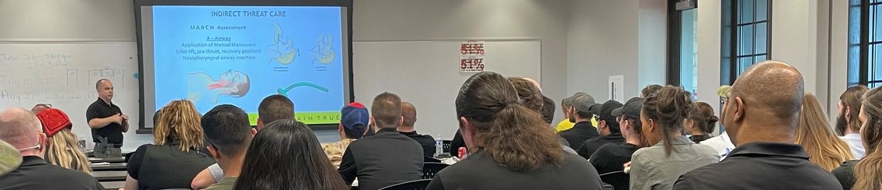 Exigent Care focuses predominantly on HOT ZONE / DIRECT THREAT CARE training (massive bleeding control), includes the full American College of Surgeons STOP THE BLEED® training course, and provides an introduction to the MARCH assessment protocol performed within the WARM ZONE / INDIRECT THREAT CARE environment. No prior training or prerequisite is required for this entry level course.